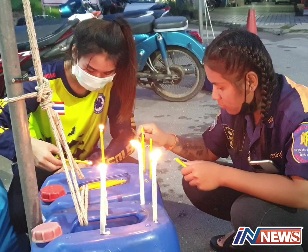 ราชบุรี - ชาวโพธารามกว่า 100 คน พร้อมจนท.กู้ภัยสว่างราชบุรี ร่วมวางดอกไม้จุดเทียนไว้อาลัย เหยื่ออดีตตำรวจกราดยิง ศูนย์พั...