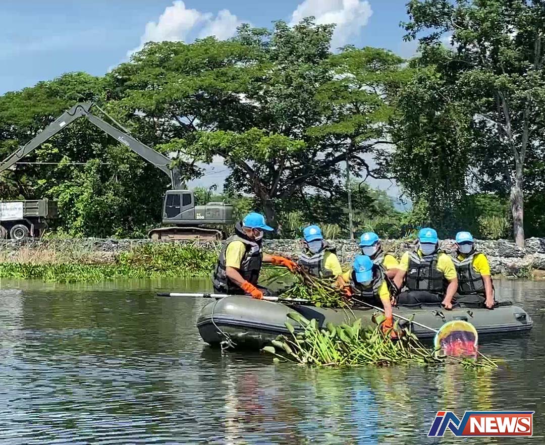 องพลทหารม้าที่1จิตอาสาพระราชทาน กำจัดผักตบชวาวัชพืชกีดขวางทางน้ำ