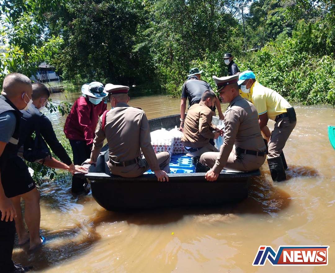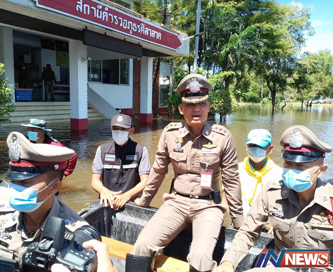 รองผู้การฯศรีสะเกษเยี่ยมตร.สภ.ศิลาลาด ลุยน้ำมอบสิ่งของเป็นกำลังใจสู้ภัยน้ำท่วม