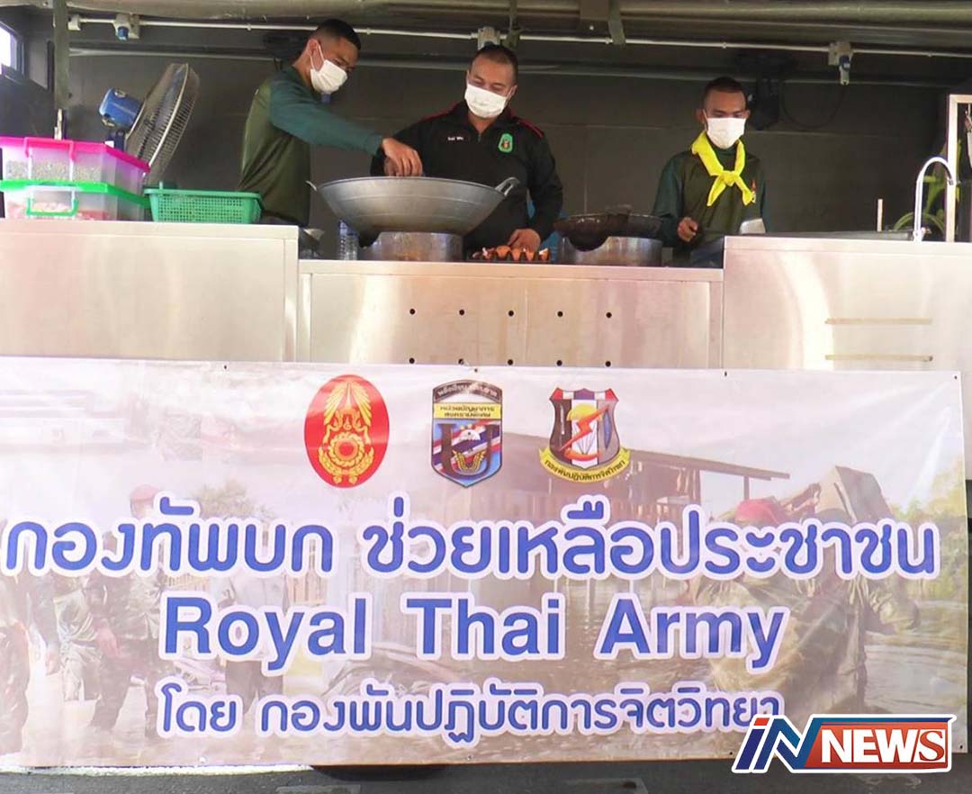 ลพบุรี-ศูนย์บรรเทาสาธารณภัย กองพันปฏิบัติการจิตวิทยา จัดรถครัวสนาม ประกอบอาหารปรุงสุก พร้อมด้วยถุงยังชีพ จากกองทัพบก ลงเ...