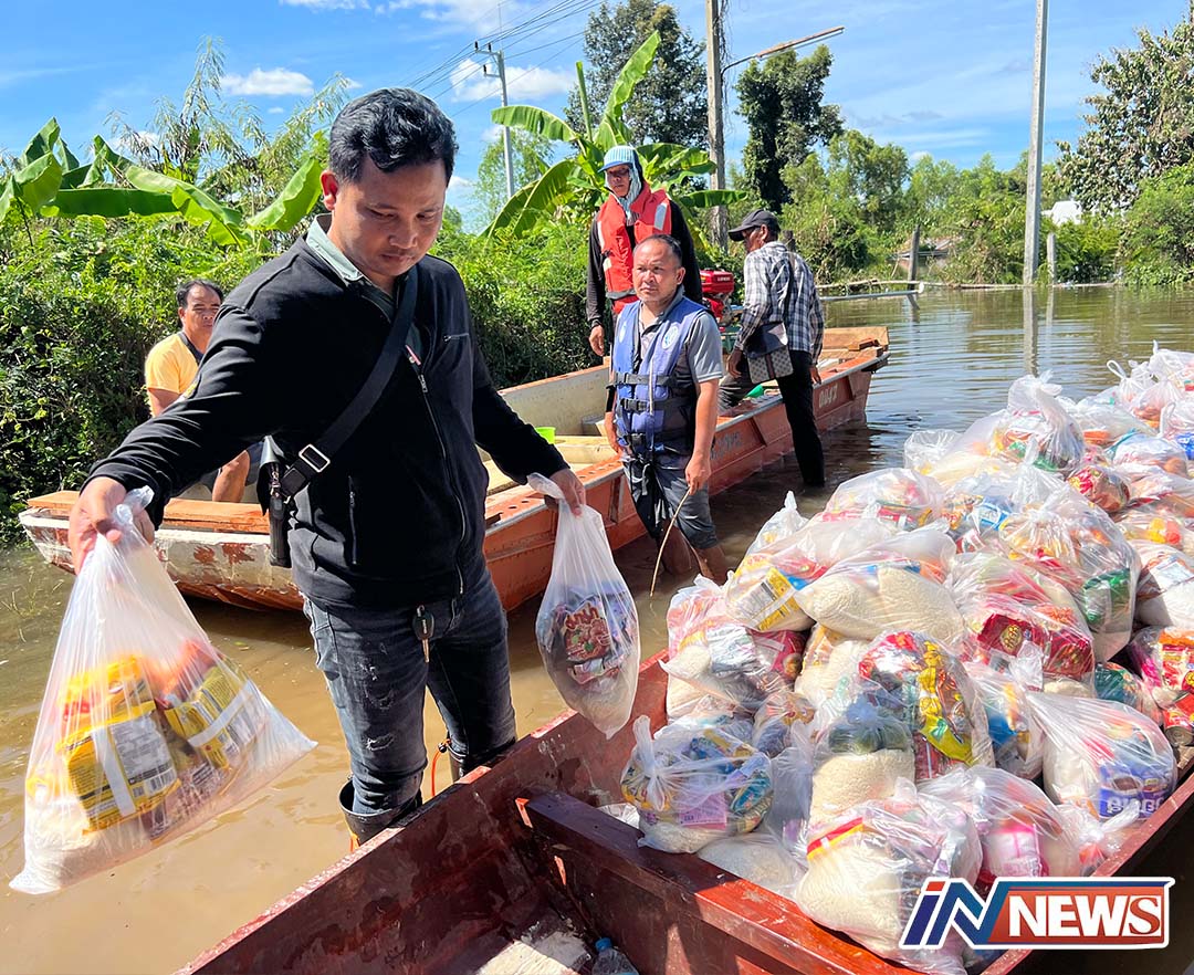 ศรีสะเกษ -อำเภอกันทรารมย์มอบถุงยังชีพน้ำดื่มช่วยชาวบ้านโพนทรายและบ้านโนนเรือที่ถูกน้ำท่วมตัดขาดจากโลกภายนอก