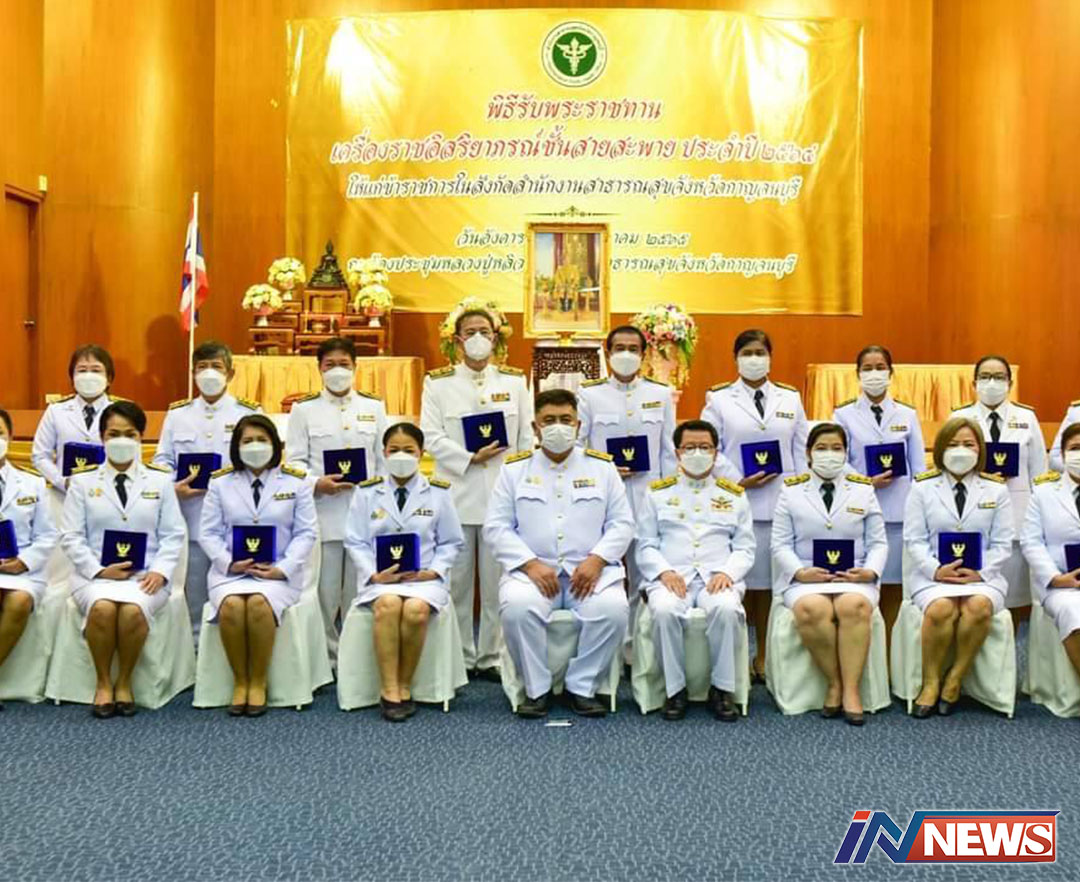 สสจ.กาญจนบุรีรับพระราชทานเครื่องราช หน้าพระบรมฉายาลักษณ์ในหลวง