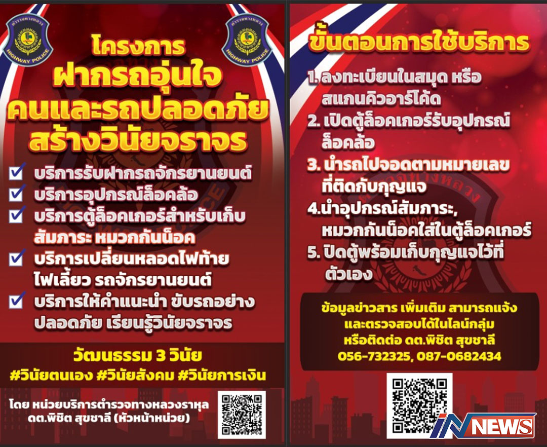 ตำรวจทางหลวงจัดโครงการฝากรถอุ่นใจ คนและรถปลอดภัยสร้างวินัยจราจร