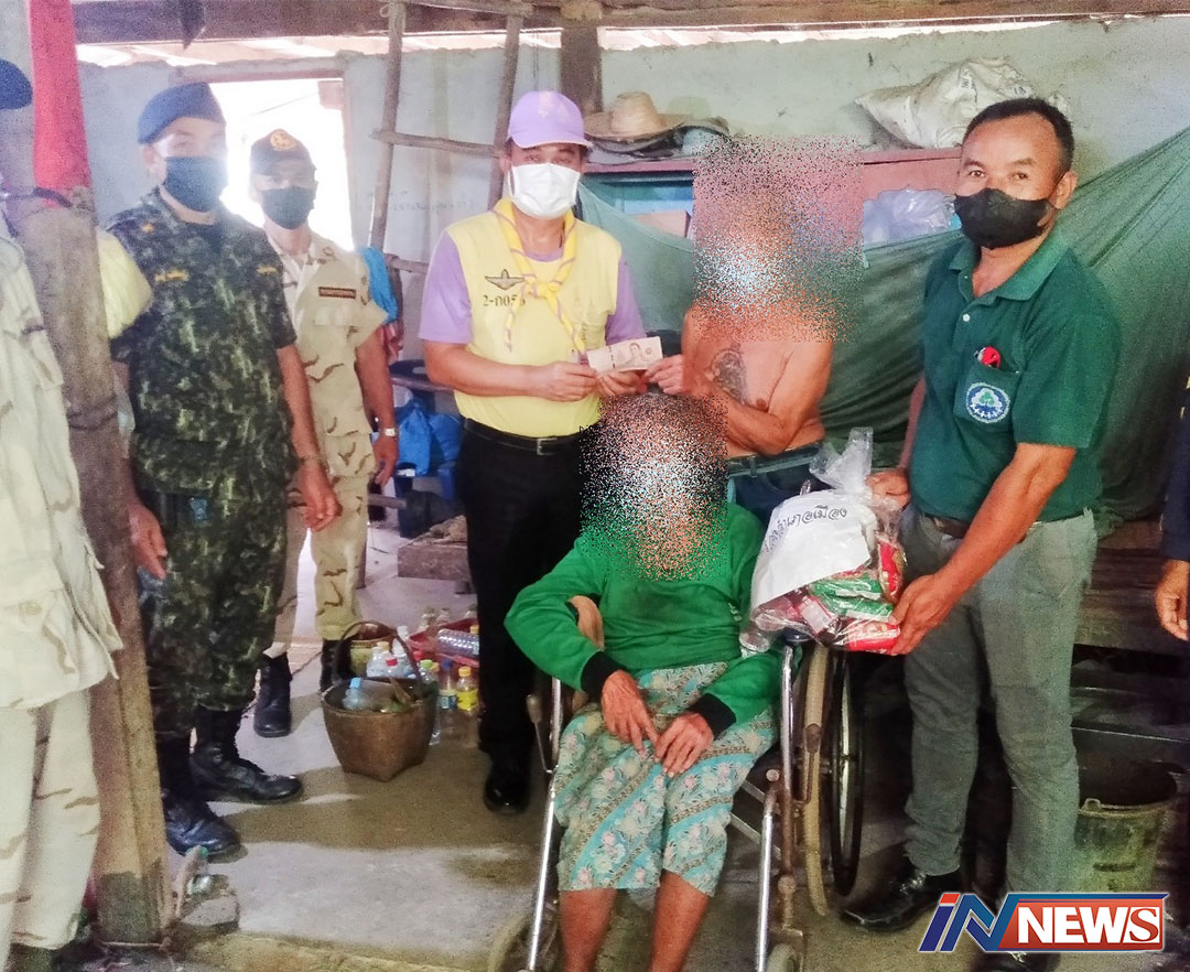 นอภ.เมืองหนองบัวลำภูผนึกกำนันผญบ. แจกถุงยังชีพมอบเงินผู้ยากไร้4ครัวเรือน
