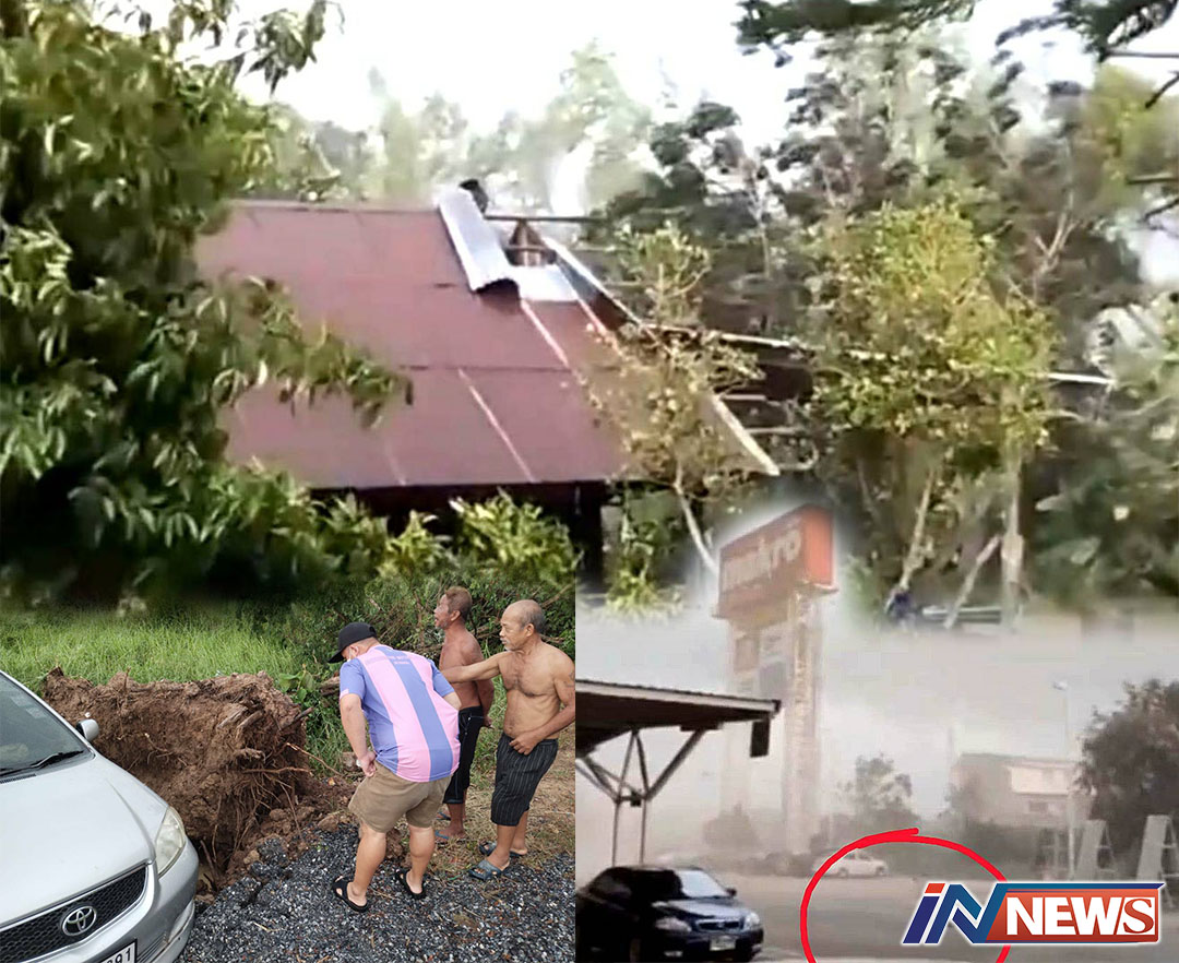 พายุฝนฤดูร้อนถล่มนครนายกเสียหายยับ บ้านเรือนหลังคาเปิดต้นไม้ล่มรถยนต์พัง