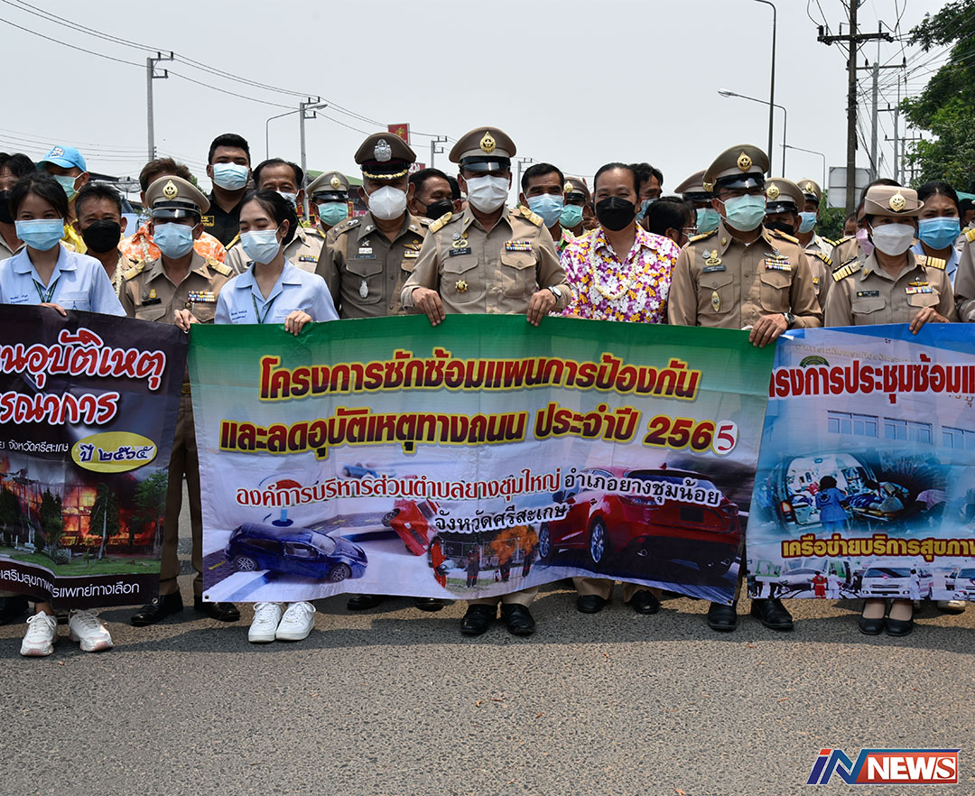 ศรีสะเกษ-นายอำเภอยางชุมน้อยเปิดการรณรงค์ป้องงกันและลดอุบัติเหตุทางถนนช่วงเทศกลสงรานต์ 2565