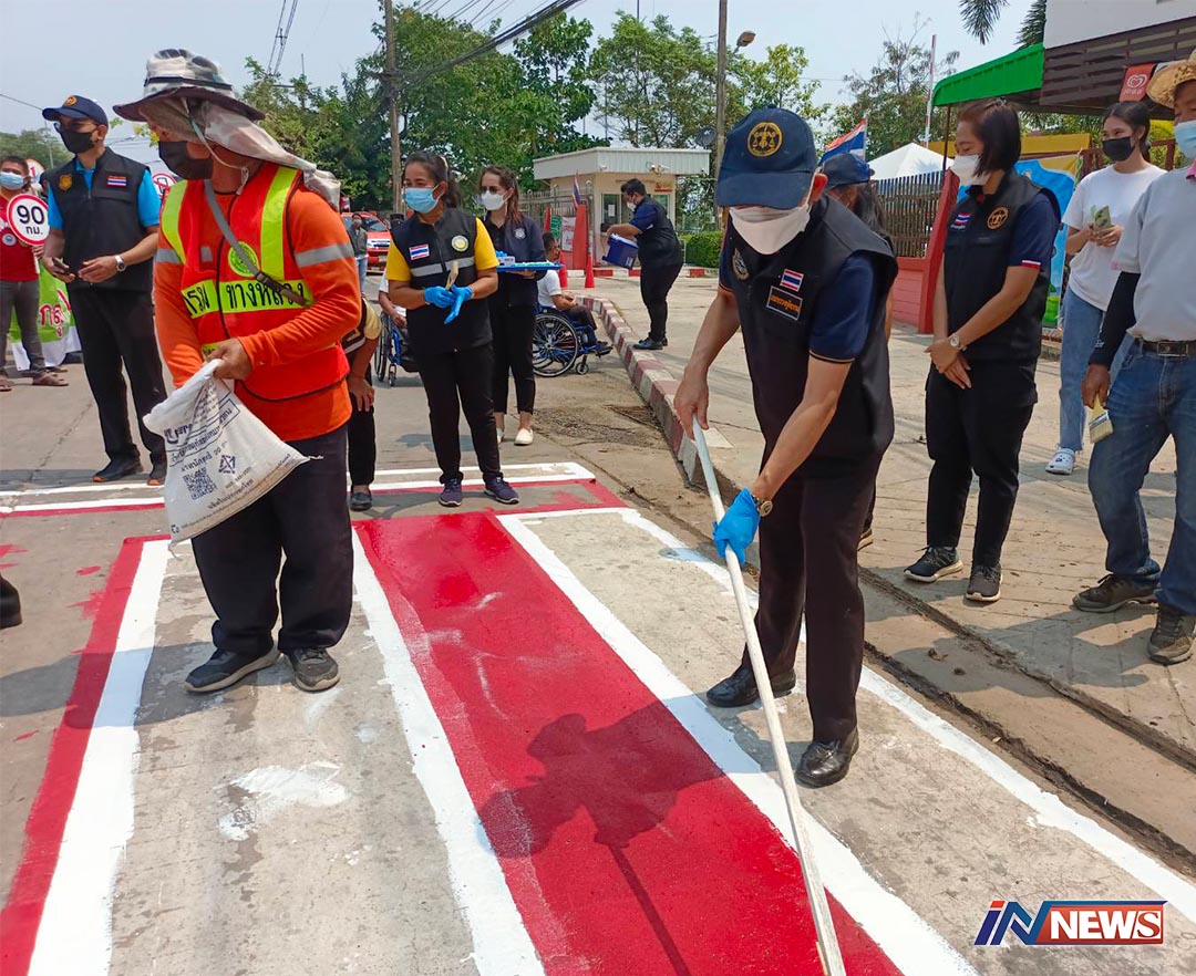 คุมประพฤติกาฬสินธุ์ลดทำผิดเมาแล้วขับ บำเพ็ญประโยชน์ทาสีถนนทางม้าลาย