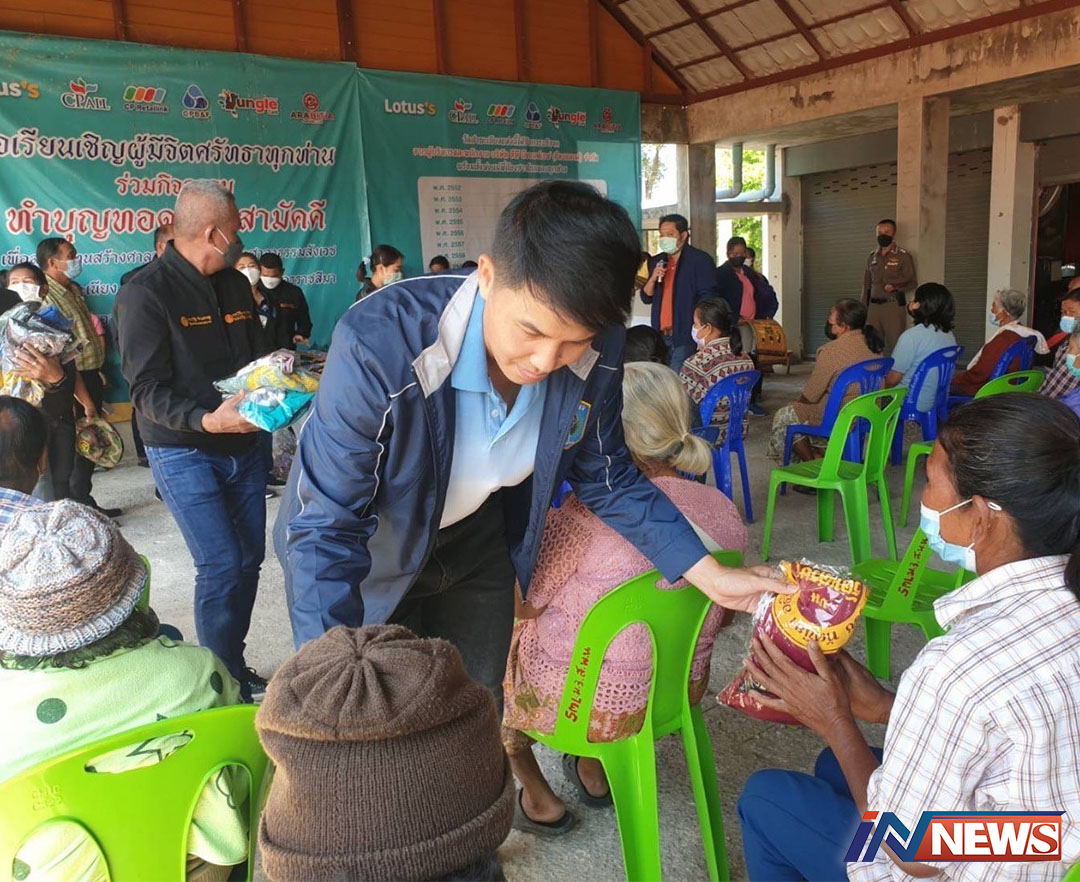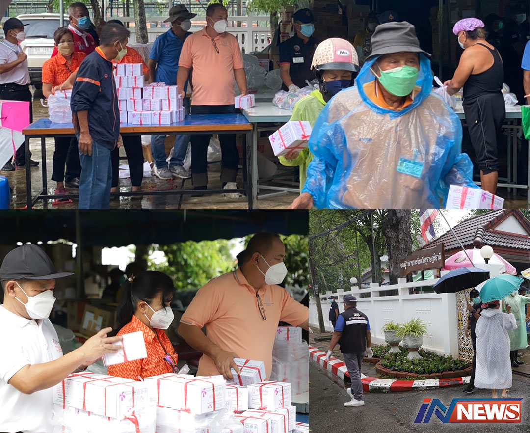 สุราษฎร์ฯปันรักกลางสายฝนแจกถุงปันสุข กลุ่มเปราะบาง-ได้รับผลกระทบโควิด