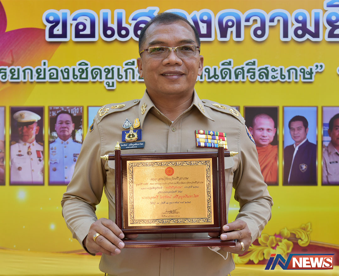 นอภ.ศิลาลาดรับมอบโล่'คนดีศรีสะเกษ' ปี2564จาก19รายใน22อำเภอ