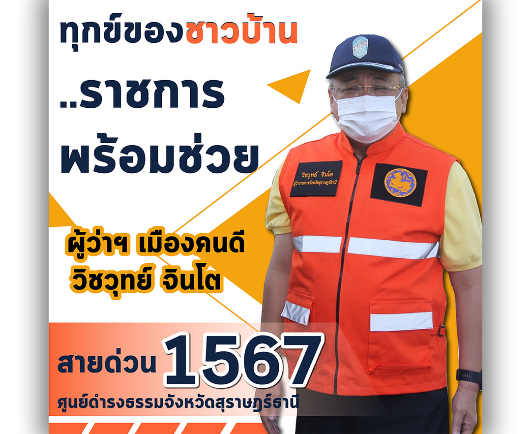 สุราษฏร์ธานี-จังหวัดสุราษฎร์ธานีเปิดบริการสายด่วนศูนย์ดำรงธรรม 1567 รับเรื่องร้องเรียนร้องทุกข์ของประชาชน