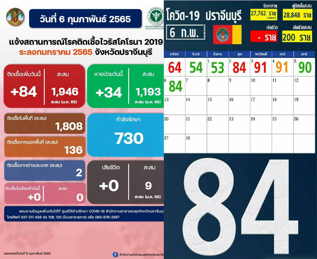 ปราจีนบุรี-โควิด-19วันนี้84รายขณะที่คลัสเตอร์เทศบาลตำบลโคกปีบยังลามไม่หยุดพร้อมยอดผู้สัมผัสใกล้ชิดผู้ป่วยพุ่ง