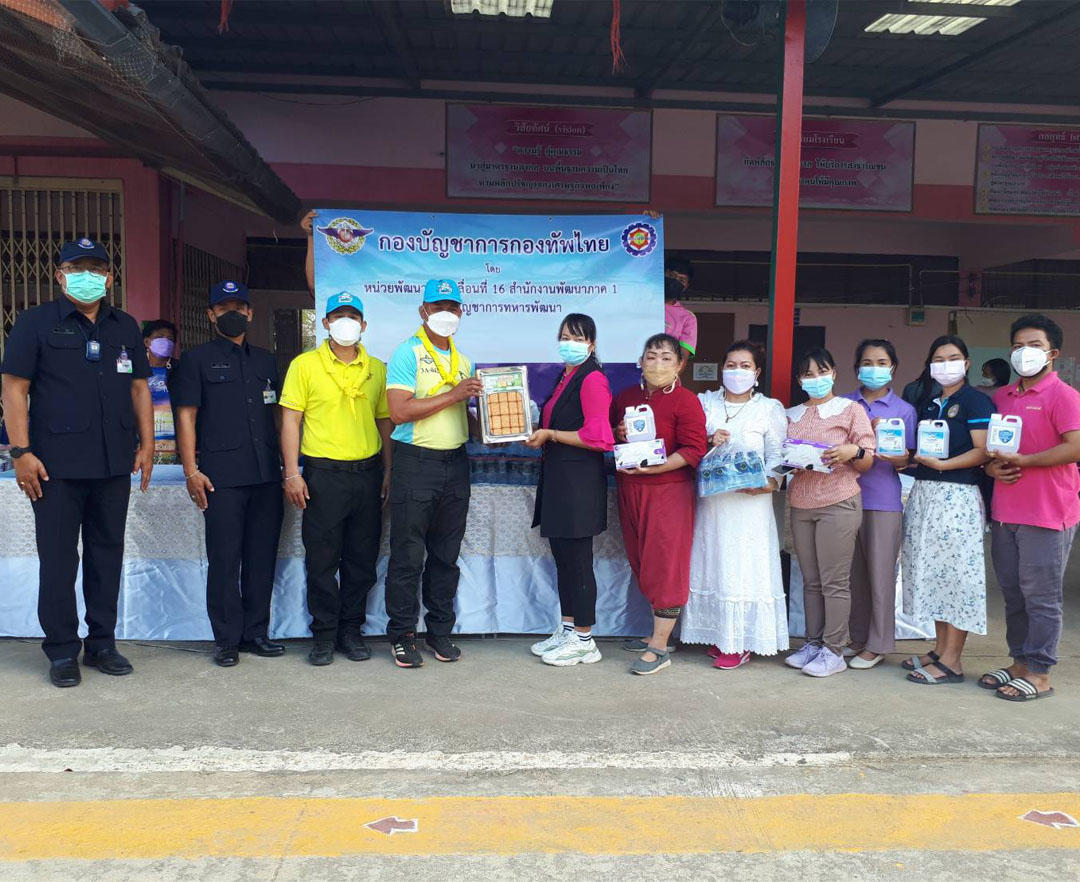 ทหารพัฒนาช่วยโควิดมอบน้ำดื่มสะอาด 300 ขวด-แอลกอฮอล์ถุงมืออนามัย