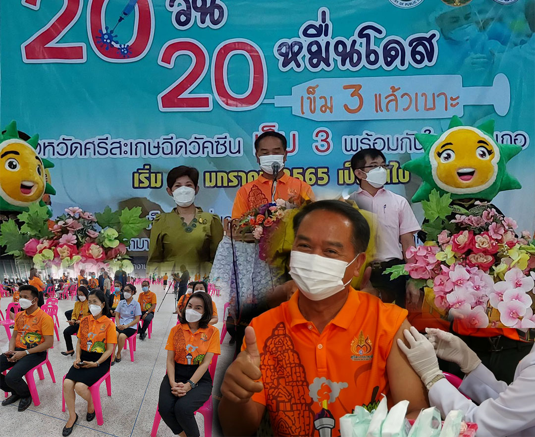 ศรีสะเกษเปิดโครงการ20วั 20หมื่นโดส 'ฉีดเข็ม3แล้วเบ๊าะ!' ถึง14กุมภาพันธ์นี้