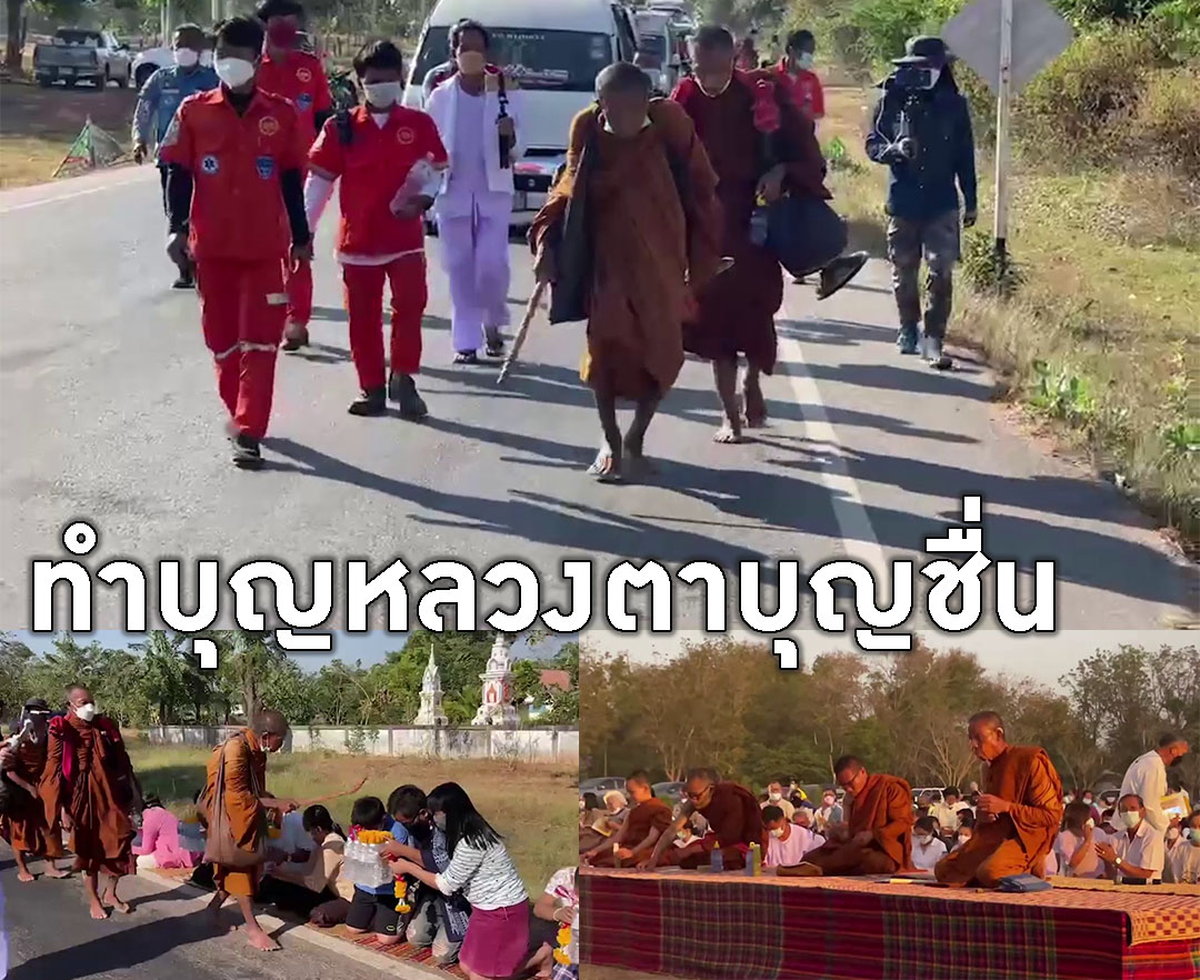 นครราชสีมา-หลวงตาบุญชื่นเดินสุดเขตโคราชก่อนมุ่งหน้าสู่จังหวัดขอนแก่นแห่ทำวัดเย็นคนเข้าร่วมทำบุญจำนวนมากพบอีก 300 กิโลเมต...