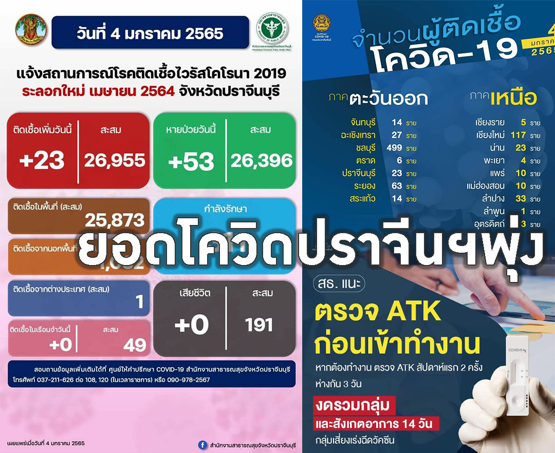 ปราจีนวันนี้ยอดโควิดพุ่ง23รายมาแรงสุด ติดเป็นดับที่4ของภาคตะวันออก