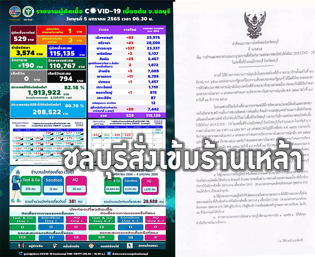 ชลบุรี-ประธานคกก.โรคติดต่อชลบุรีออกคำสั่งลงวันที่5มกราคมให้สถานประกอบการจำหน่ายอาหารหรือเครื่องดื่ม ที่มีการบริโภคสุราหร...