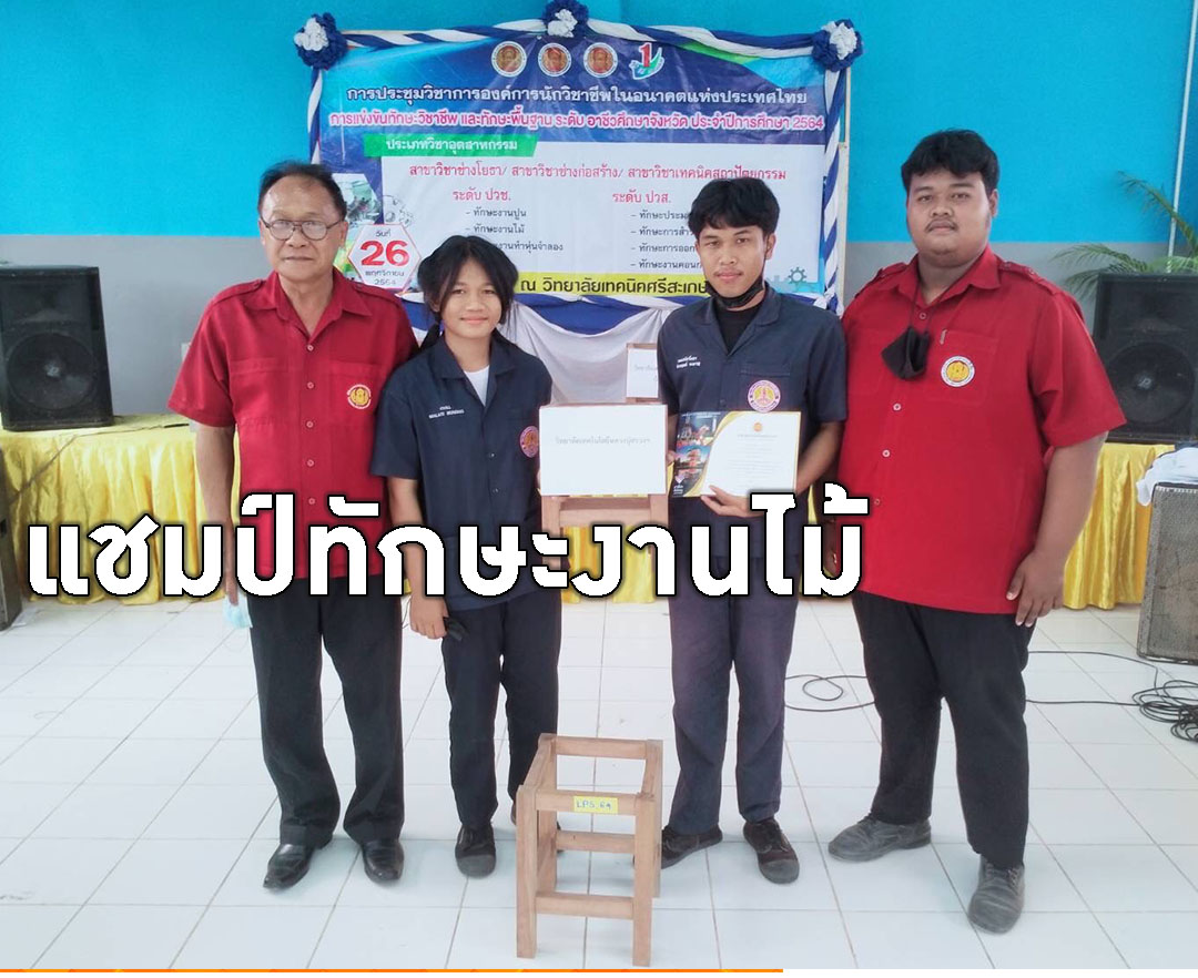 ศรีสะเกษ- 2 นักศึกษา ลปส. สุดเจ๋ง คว้าแชมป์อันดับ 1 การแข่งขันทักษะวิชาชีพงานไม้ ระดับจังหวัด
