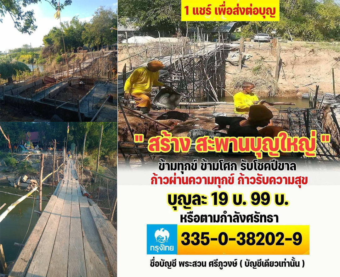ชวนร่วมสร้างสะพานบุญข้ามทุกข์รับโชค กองบุญละ19-99บาทวัดหนองไผ่ล้อม