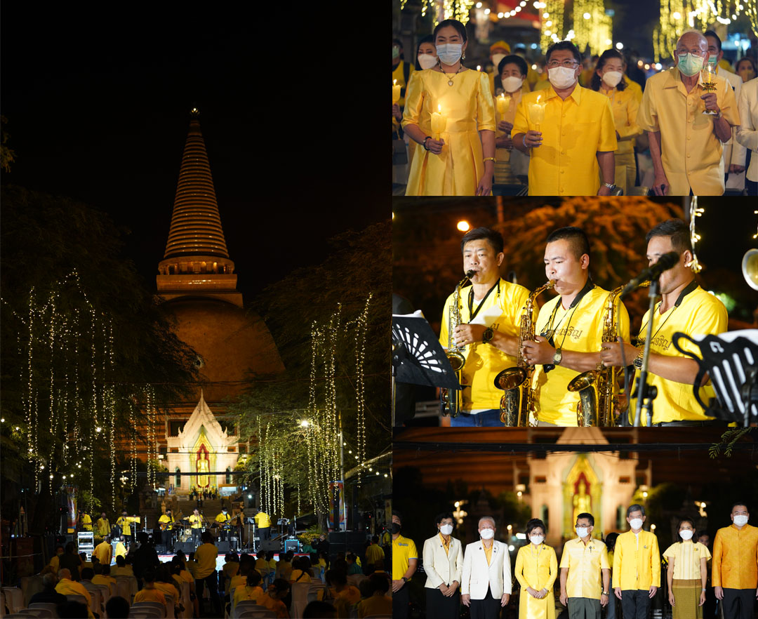 ชาวนครปฐมสวมเสื้อเหลืองจุดเทียนสดุดี จัดดนตรีบทเพลงพระราชนิพนธ์ร.9