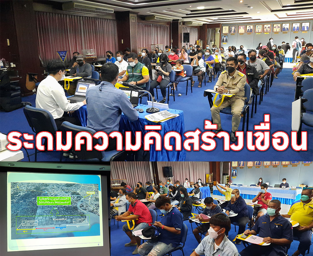 สมุทรปราการ-กรมเจ้าท่าจัดประชุมรับฟังความคิดเห็นเพื่อการก่อสร้างเขื่อนป้องกันการกัดเซาะชายฝั่งบ้านขุนสมุทรจีน