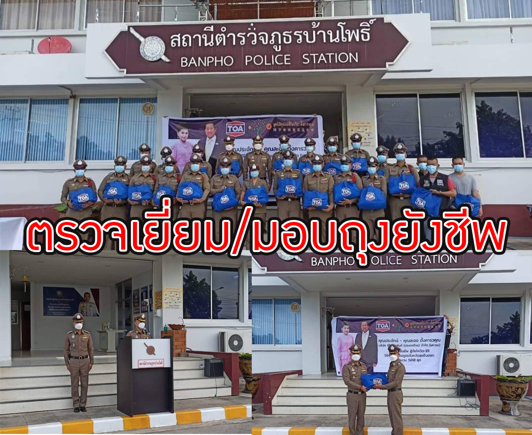 ผบก.ภ.จว.ฉะเชิงเทราตรวจเยี่ยมสภ.บ้านโพธิ์พร้อมทั้งมอบถุงยังชีพสู้ภัยโควิด-19
