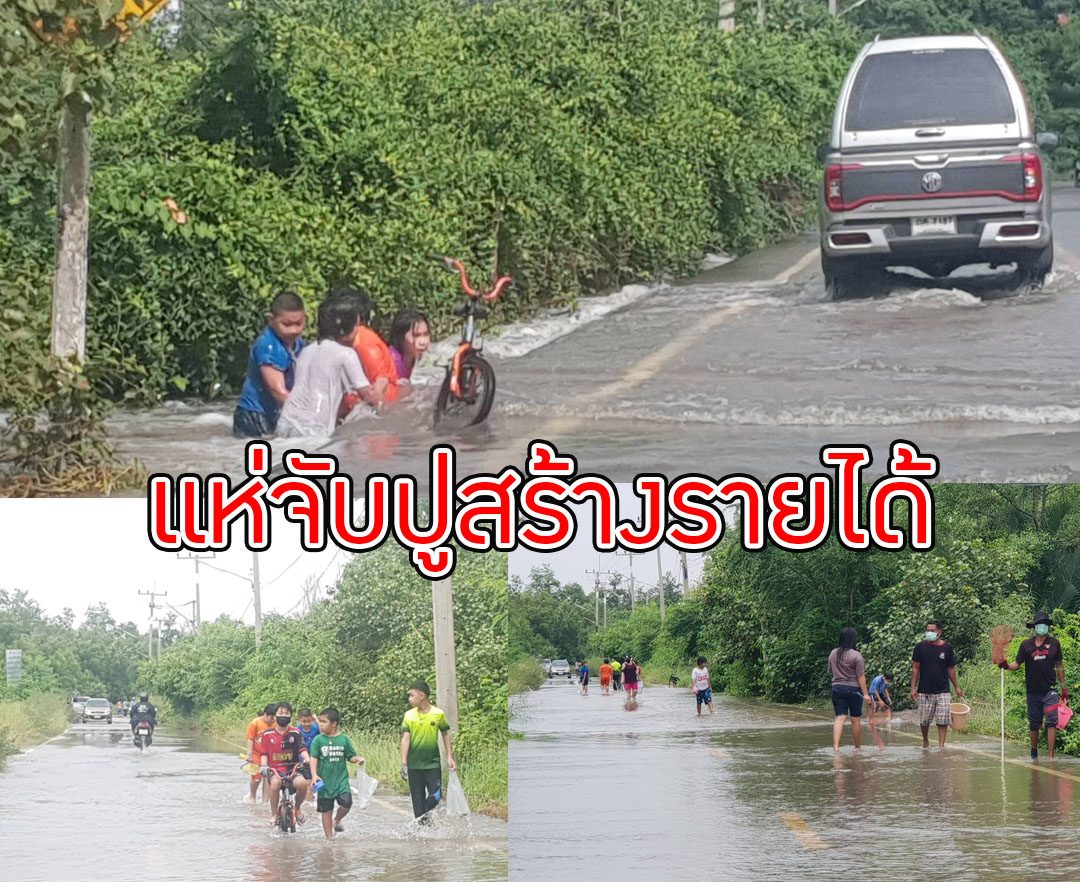 ชาวบ้านแห่จับปูช่วงน้ำทะเลหนุนเพื่อสร้างรายได้เสริม