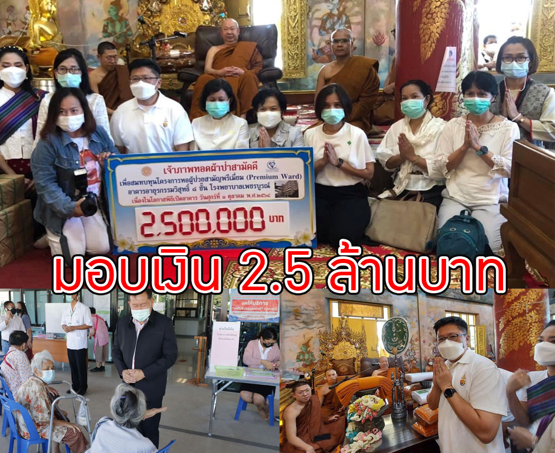 วัดป่าภูทับเบิกมอบเงิน 2.5 ล้านบาทสมทบทุนอาคารอายุรกรรมวิสุทธิ์8ชั้น