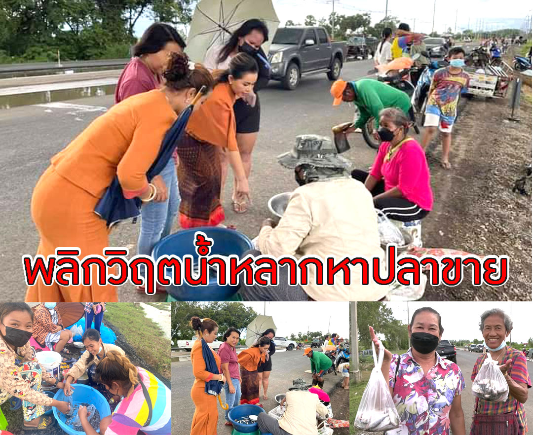 พลิกวิกฤตน้ำหลากสร้างรายได้หาปลาขาย ริมทางได้วันละ2พัน