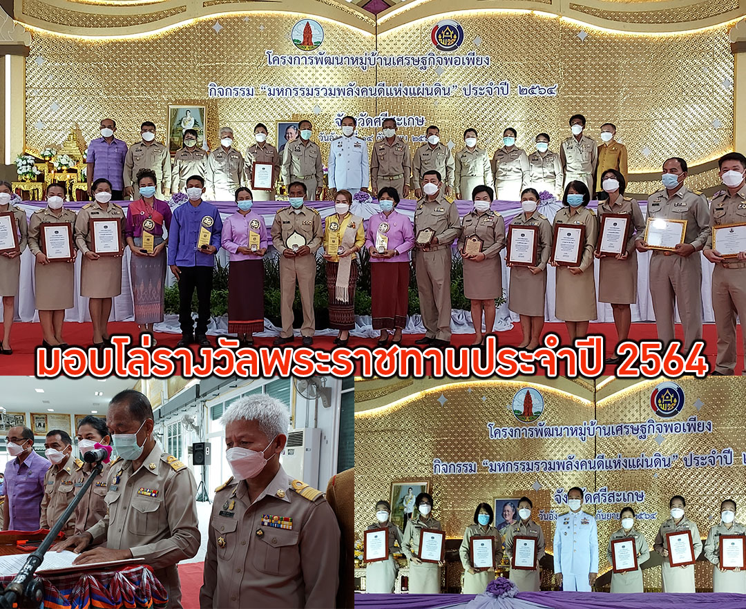 ศรีสะเกษ -เปิดมหกรรมรมพลังคนดีแห่งแผ่นดินประจำปี 2564 มอบโล่รางวัลพระราชทานหมู่บ้านเศรษฐกิจพอเพียง "อยู่เย็น เป็นสุ...