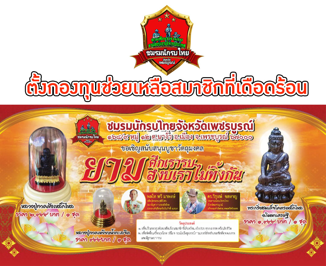 ชมรมนักรบไทยสร้างวัตถุมงคลรุ่นพิเศษ ตั้งกองทุนช่วยเหลือสมาชิกที่เดือดร้อน