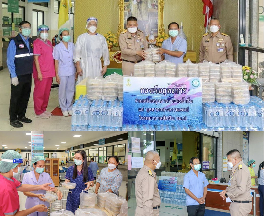 ชลบุรี-กองเรือยุทธการ มอบอาหาร และน้ำดื่ม ให้แก่บุคลากรทางการแพทย์ โรงพยาบาลสัตหีบ กม.10 ร่วมฝ่าวิกฤตโควิด-19
