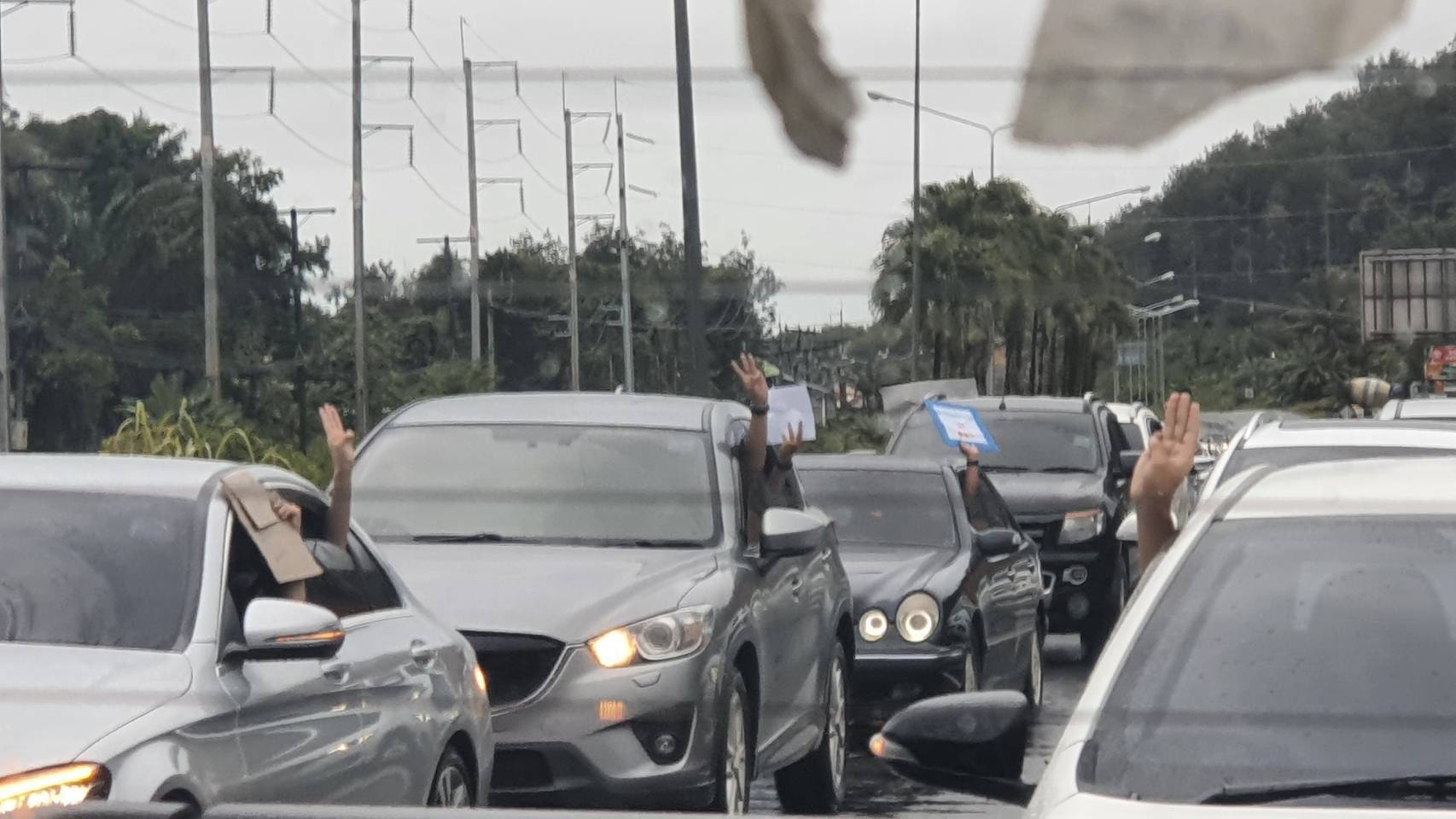 คาร์ม็อบลพบุรีรวมตัวบีบแตรไล่บิ๊กตู่