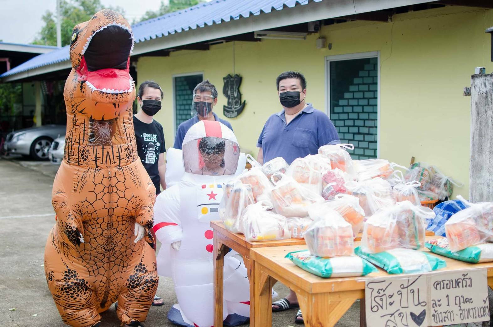 นครนายก-2 หนูน้อยสวมชุดไดโนเสาร์ ชุดนักบินอวกาศ มอบข้าวสารอาหารแห้งช่วยเหลือผู้ยากไร้ ผู้ป่วยชราและผู้กักตัว เพื่อช่วยเห...