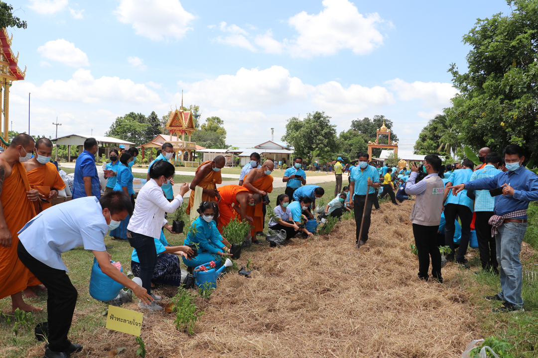 ร้อยเอ็ด-จัดกิจกรรมเฉลิมพระเกียรติฯ เอามื้อสามัคคี ปลูกสมุนไพร ฟ้าทลายโจร กระชาย ต้านภัยโควิด-19