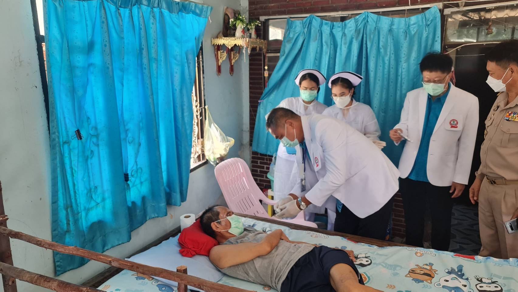 ร้อยเอ็ด-โรงพยาบาลร้อยเอ็ด จัดหน่วยแพทย์เคลื่อนที่บริการฉีดวัคซีนให้แก่ผู้ป่วยติดเตียง ถึงชุมชน