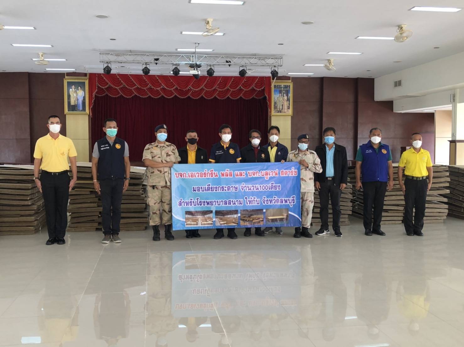 ผู้ว่าลพบุรีรับมอบเตียงกระดาษ100เตียง จากบ.เอเวอร์กรีนพลัส