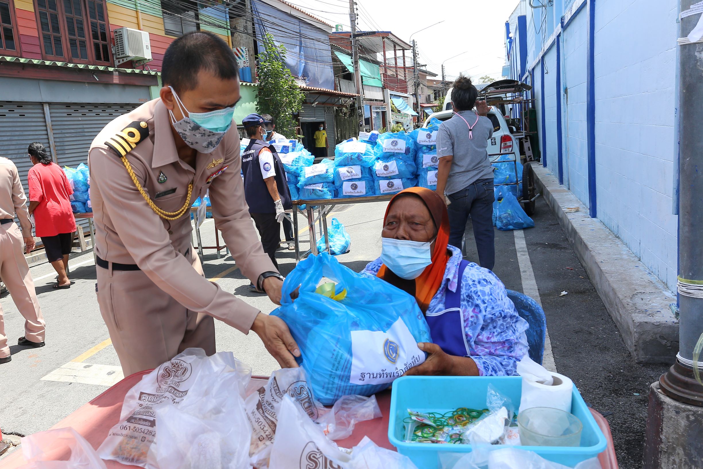 ฐานทัพเรือสัตหีบแจกสิ่งของสู้ภัยโควิด
