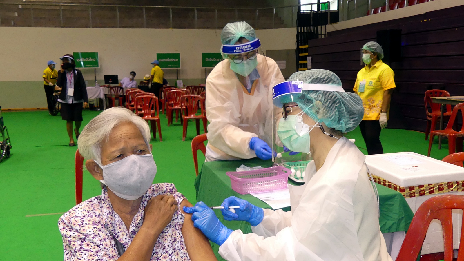 ราชบุรี - เร่งฉีดวัดซีนให้ชาวราชบุรี ขณะคณะสงฆ์จ.ราชบุรี มอบอาหารให้กำลังใจทีมแพทย์