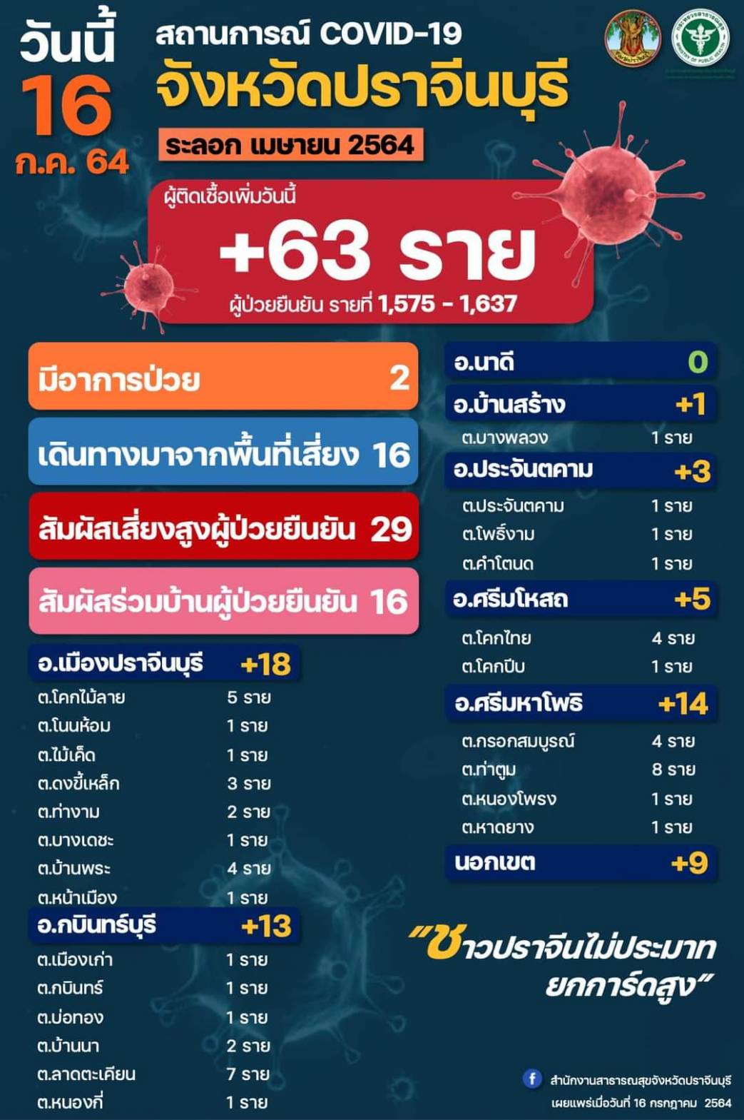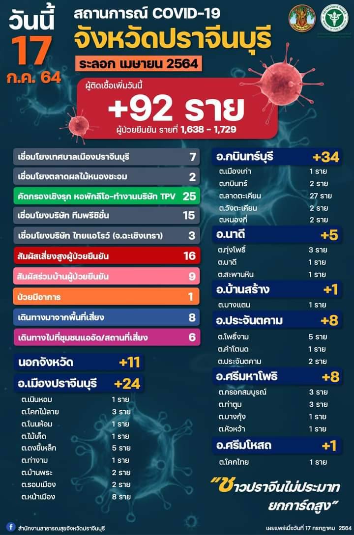 ปราจีนบุรีผู้ติดโควิดวันนี้พุ่งพรวด92ราย