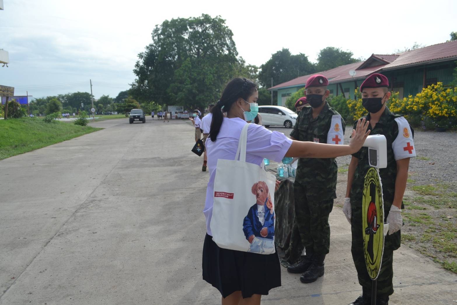 ลพบุรี-ลพบุรีเปิดเทอมวันแรก กรมรบพิเศษที่ 1 ค่ายวชิราลงกรณ์ จัดกำลังพลฯ อำนวยความสะดวกการจราจร และช่วยตรวจคัดกรอง ตรวจวั...