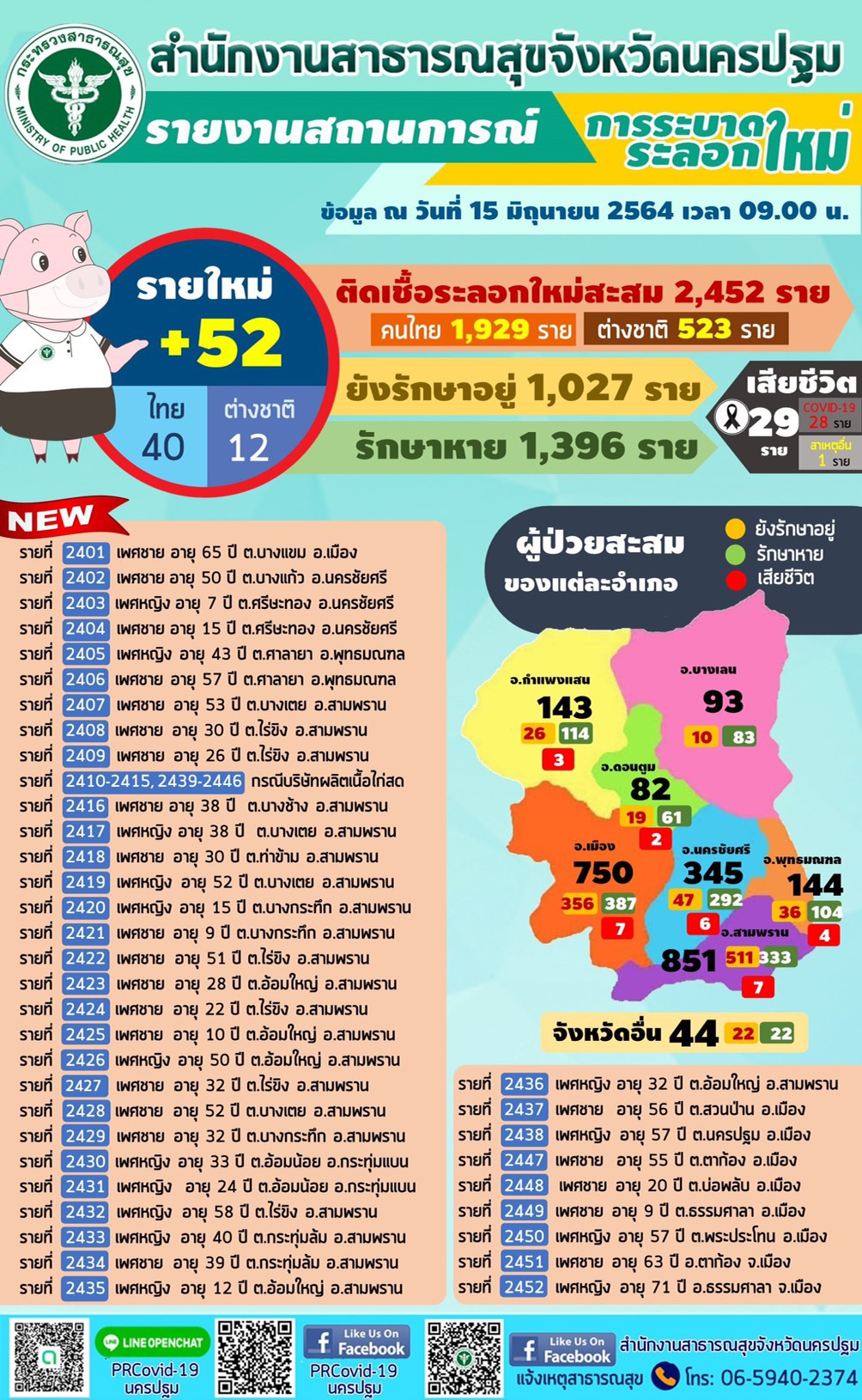 นครปฐมยังหนักติดเชื้อโควิดวันนี้52ราย