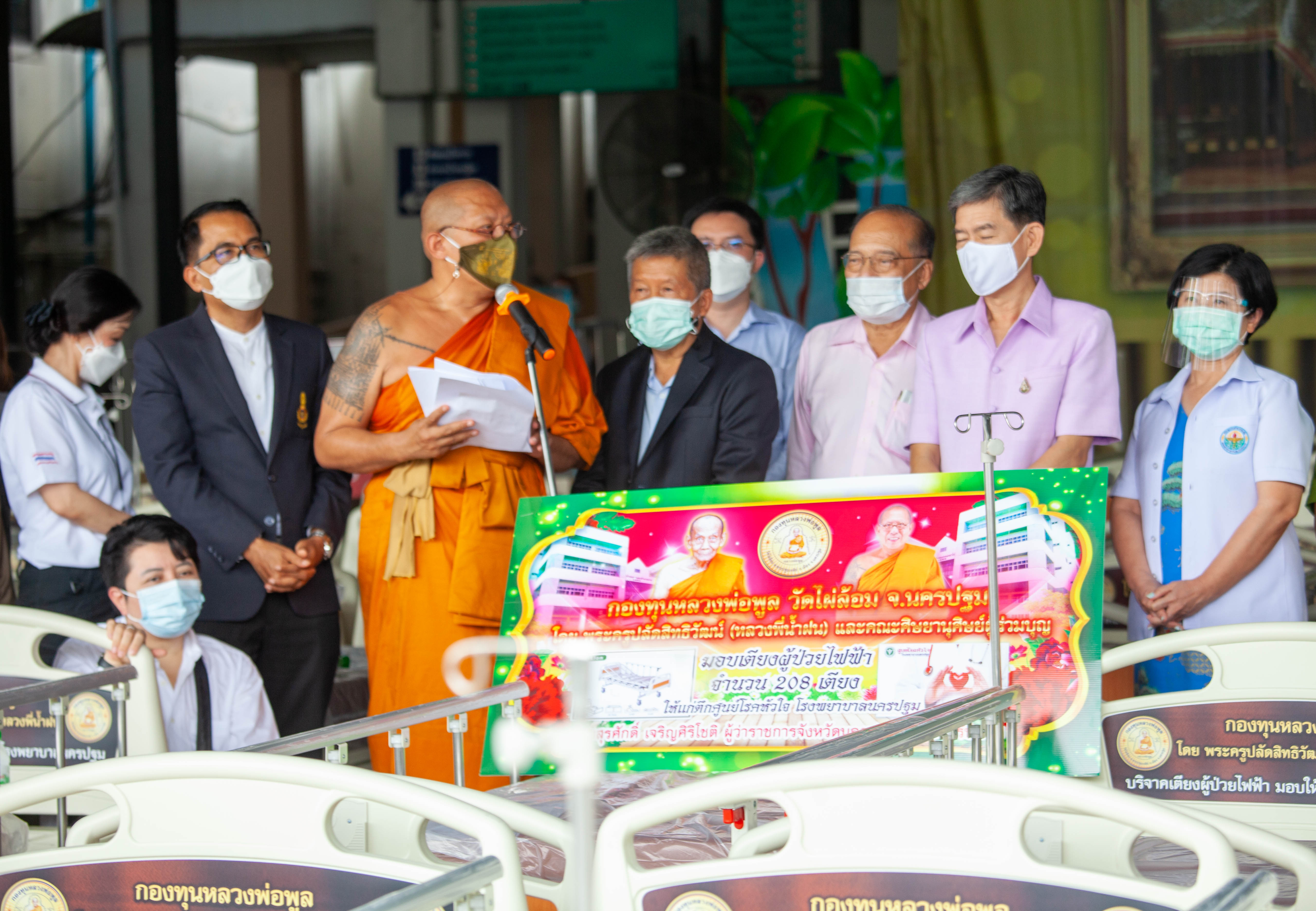 นครปฐม-หลวงพี่น้ำฝน เจ้าอาวาสวัดไผ่ล้อม นำคณะศิษย์ ส่งมอบเตียงไฟฟ้า จำนวน 97 เตียงปิดจ๊อบ ครบ 208 เตียง ให้โรงพยาบาลนครป...