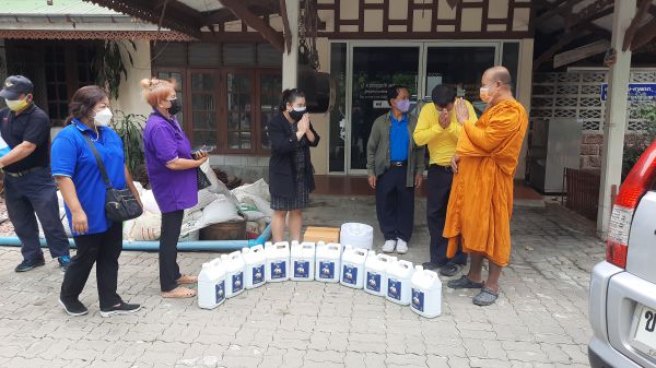 สมุทรปราการ-สมาชิกสภาองค์การบริหารส่วนขังหวัดสมุทรปราการ ลงพื้นที่มอบแอลกอฮอล์และน้ำยาฆ่าให้วัดและตลาดสด