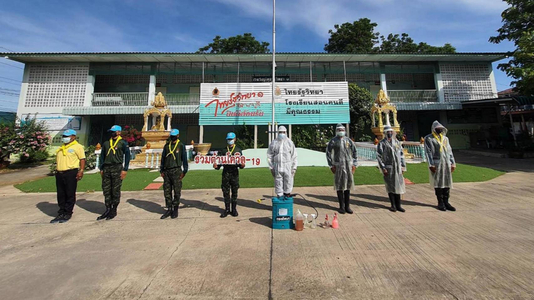 ลพบุรี-ศูนย์อำนวยการจิตอาสาพระราชทาน มณฑลทหารบกที่ 13 ฉีดพ่นยาฆ่าเชื้อ ล้างทำความสะอาด สถานศึกษาพื้นที่ชุมชนรอบค่าย เพื่...