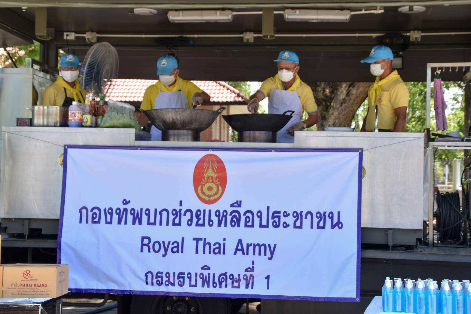 ทวีศักดิ์/ลพบุรี-ค่ายวชิราลงกรณ์ พลร่มป่าหวาย นำรถครัวสนาม และรถปันสุข จัดทำอาหารปรุงสุกสดใหม่ ดูแลประชาชนรอบค่าย พร้อมท...