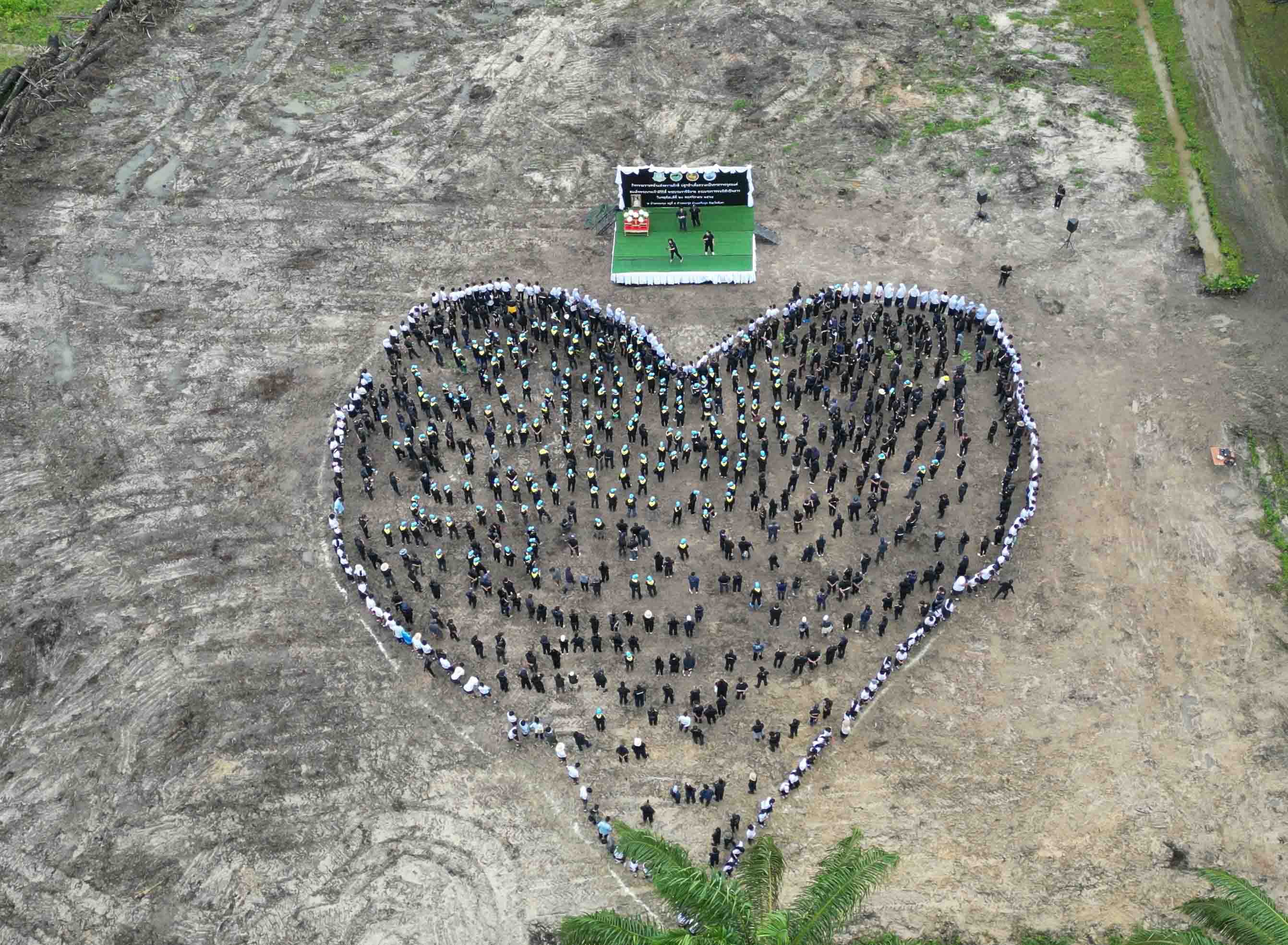 พังงา-ผู้ว่าพังงานำพสกนิกรแปรขบวนเป็นรูปหัวใจ สืบสานปณิธาน “แม่ของแผ่นดิน” ปลูกป่าชายเลนพลิกฟื้นระบบนิเวศ ถว...