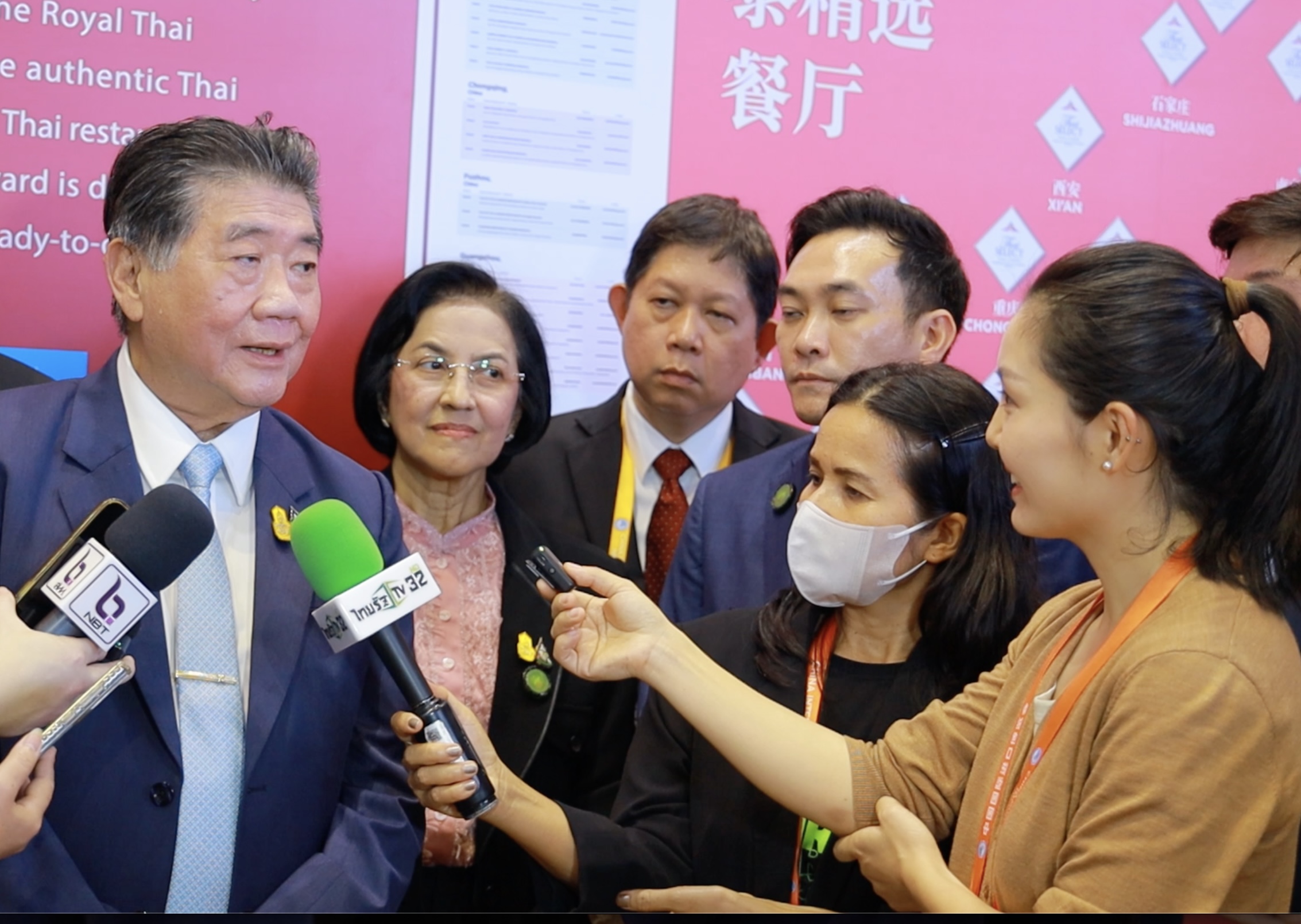 นายภูมิธรรม เวชยชัย รองนายกรัฐมนตรีและรัฐมนตรีว่าการกระทรวงพาณิชย์ไทยให้สัมภาษณ์ผู้สื่อข่าวไชน่ามีเดียกรุ๊ปว่า งาน CIIE ...
