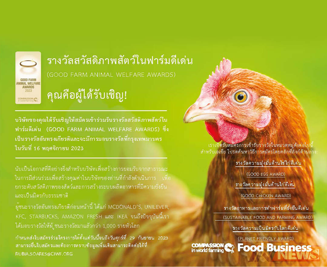 องค์กรการกุศลด้านฟาร์มเลี้ยงสัตว์ Compassion in World Farming International (CIWF) เผยการกลับมาของสุดยอดรางวัล...