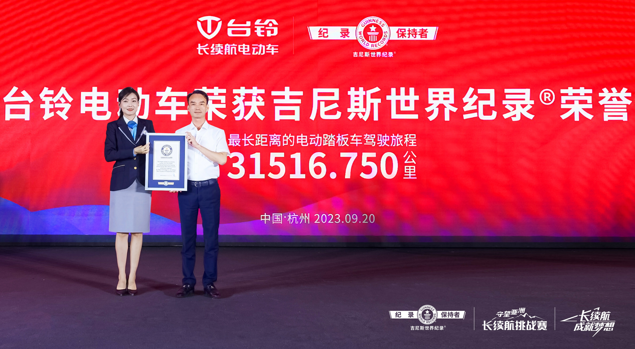 'ไถ่หลิง'ทำลายสถิติโลกกินเนสส์เวิลด์ฯ เดินทางด้วยสกู๊ตเตอร์ไฟฟ้าไกลที่สุด