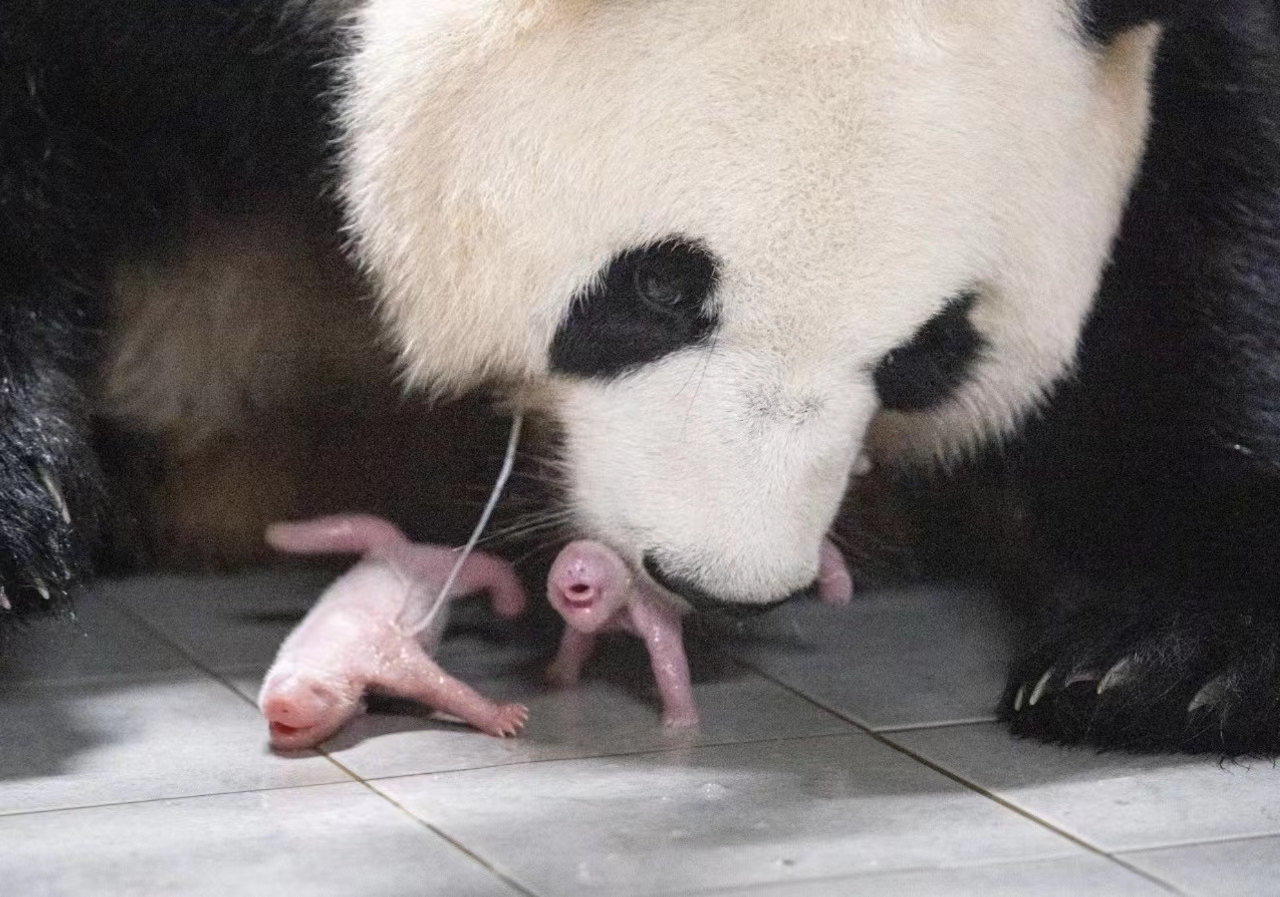ยินดีต้อนรับ ลูกแพนด้าเพศเมียฝาแฝด สมาชิกใหม่แห่งครอบครัว "เป่า" ลูกของแพนด้าเพศเมีย "อ้ายเป่า" และแ...